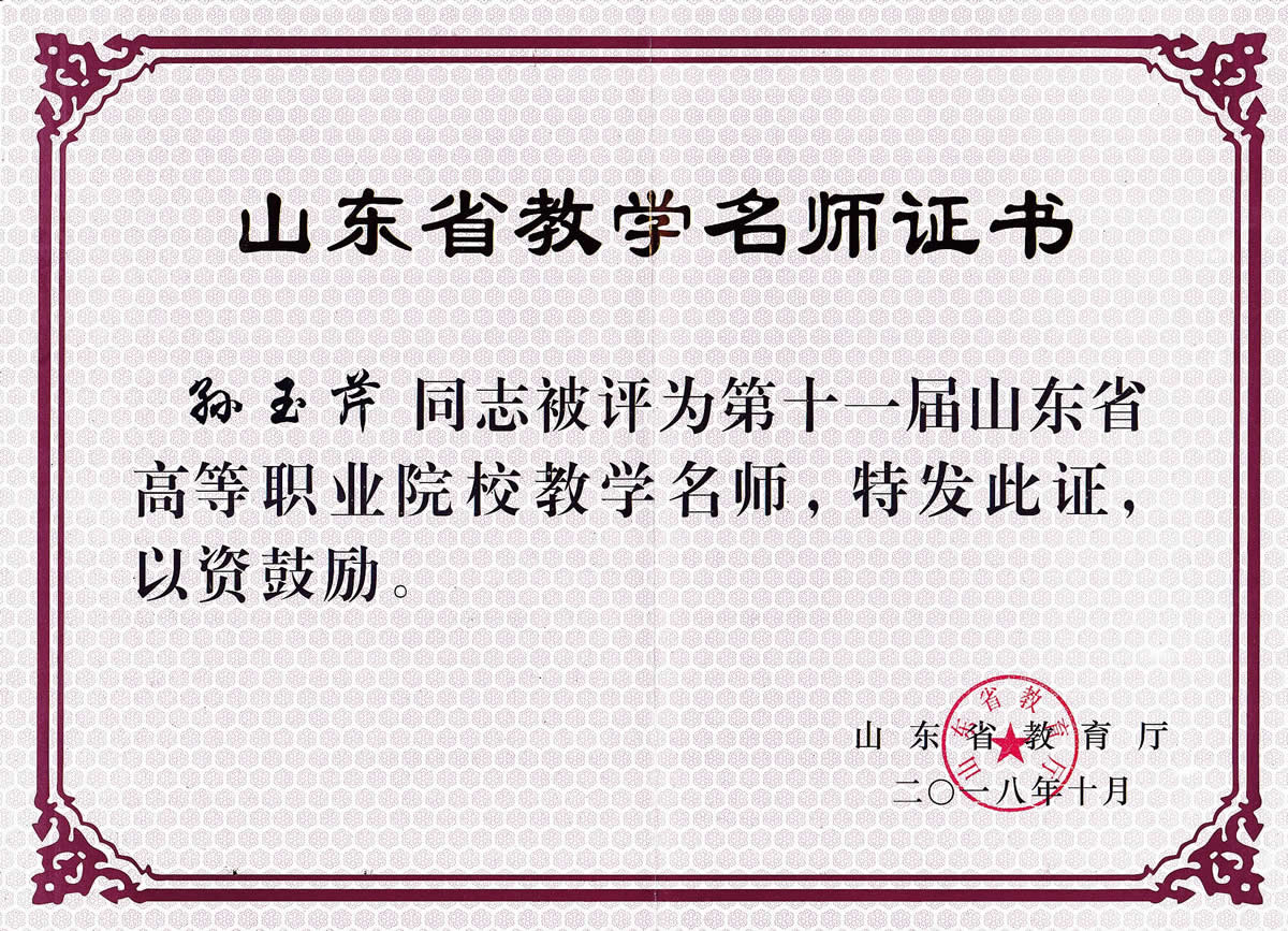 日前,山东省教育厅公布了第十一届山东省高职院校教学名师通过认定名单,我院会计与统计学院副院长、副教授孙玉芹同志以优异成绩通过专家评审,获批为第十一届山东省高职院校教学名师。