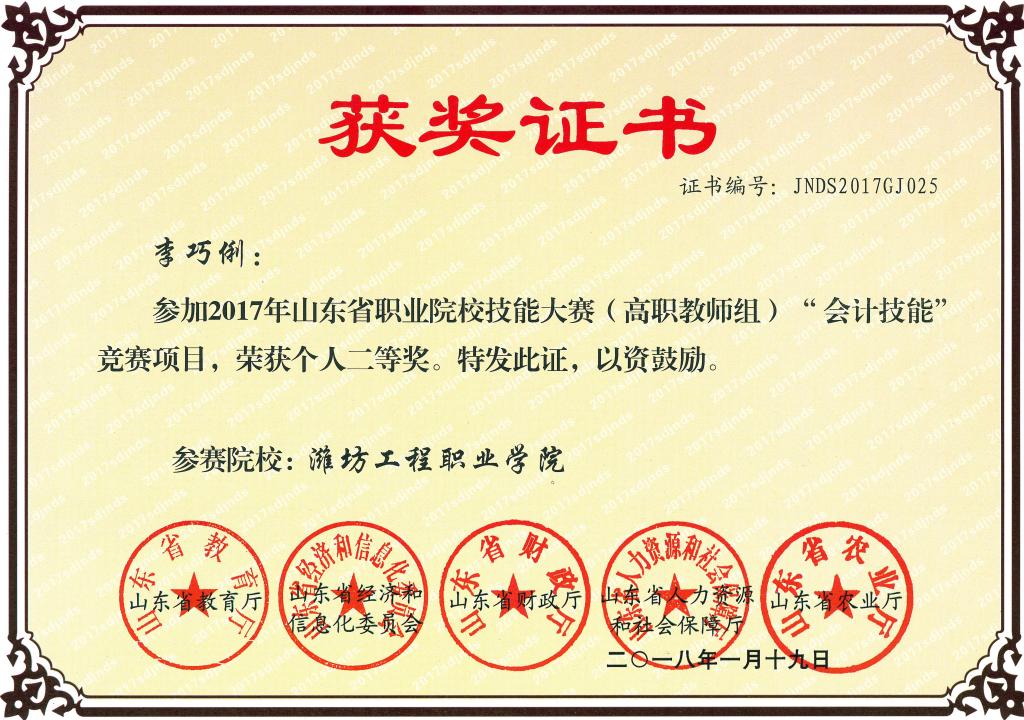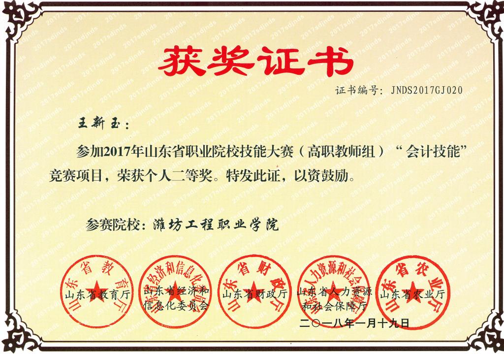 2017年12月24日,山东省首届职业院校技能大赛高职教师组“会计技能”赛项在山东理工职业学院举行,来自全省近40所高职院校的会计专业教师参加了此次比赛。经过激烈角逐,我院派出的王新玉和李巧俐老师均荣获二等奖。
