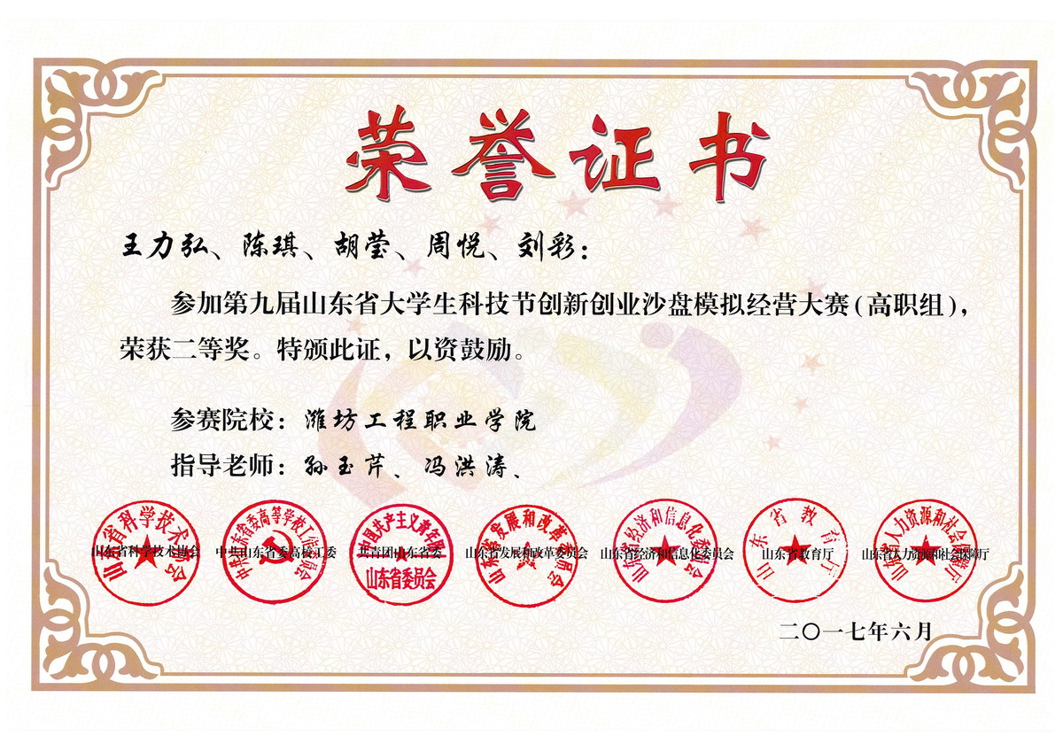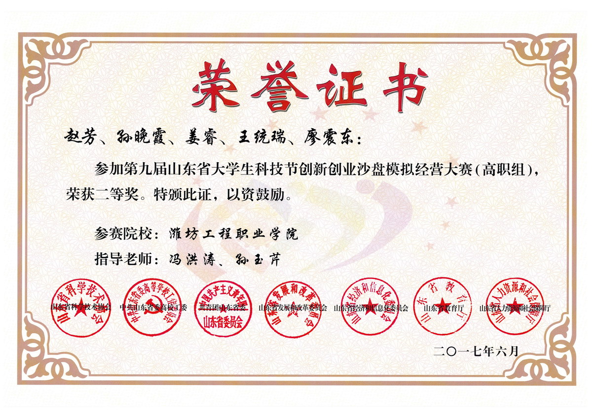我院学生参加第九届山东省大学生科技节创新创业沙盘模拟经营大赛获得二等奖